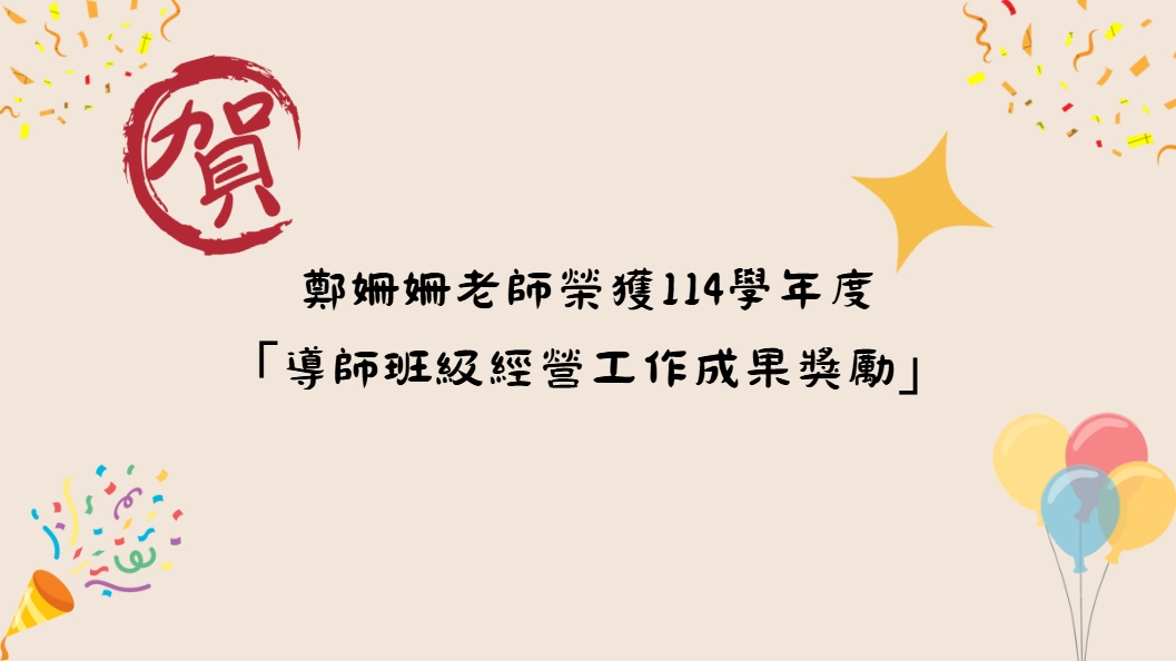 賀 鄭姍姍老師榮獲114導師班級經營工作成果獎勵