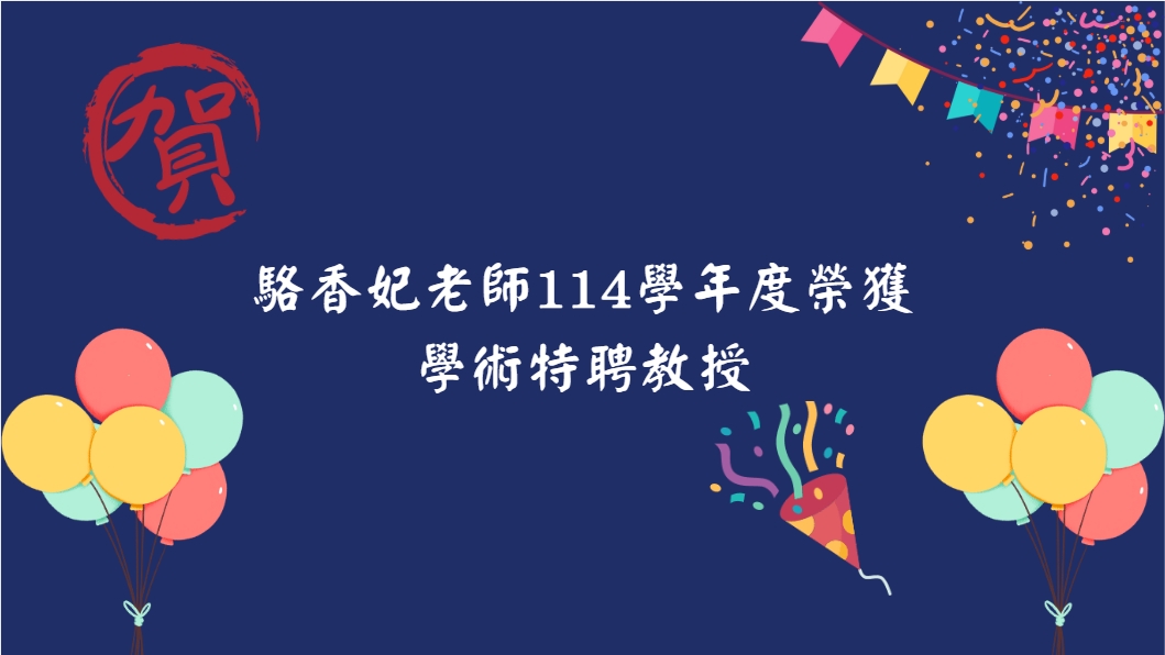 賀 駱香妃老師114學年度榮獲 學術特聘教授